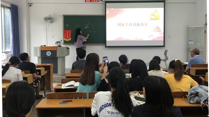 接下来是分享交流环节,以团员上台分享党史故事的形式展开。彭仕丹以家乡博罗三棵松战役的历史激励团员们不忘初心、牢记使命,用坚定的信念建设美好生活。