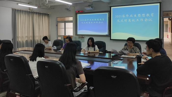 为扎实做好2021届毕业生文明、安全离校教育工作,我院于6月1日下午召开了2021届毕业生思想教育及文明离校工作会议,党总支副书记兼班主任杨倩、辅导员肖文政以及全体毕业生参加了会议。