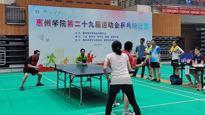 6月6日,由惠州学院体育运动委员会主办、惠州学院工会、教务处、学生处、团委、体育学院承办的第二十九届运动会乒乓球比赛完成了预定的各项赛程,在金山湖体育馆圆满落下帷幕。马克思主义学院分工会积极组织教职工队员参赛,经过各阶段的奋力拼搏,荣获团体赛第四名好成绩。