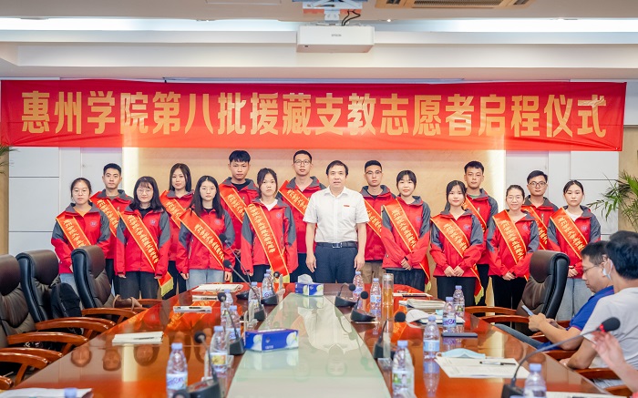 8月14日下午,惠州学院第八批援藏支教志愿者启程仪式在行政楼202会议室举行,我院党总支书记刘国远、辅导员肖文政、援藏学子邓惠敏参与了本次仪式。