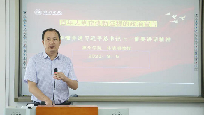 为深入学习贯彻习近平总书记“七一”重要讲话精神,推动学院党史学习教育往深里走、往实里走,林清明院长作了“百年大党奋进新征程的政治宣言----学懂弄通习近平总书记‘七一’重要讲话精神”为题的本学期党史学习教育第一课。林院长重点阐述了习近平总书记“七一”重要讲话的整体逻辑架构、中国共产党的伟大建党精神等,强调教师们要以学习贯彻“七一”重要讲话精神为重点,并以此为指导不断深化对党的历史的系统把握。报告深入浅出、内容丰富,效果突出。