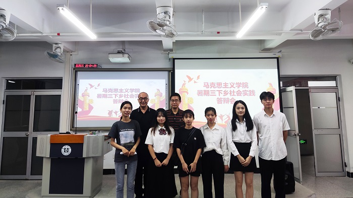 为检验和总结我院学生暑期“三下乡”社会实践成果,展示各团队风采,9月29日晚上,暑期“三下乡”社会实践答辩会在旭日楼228教室顺利举行。马克思主义学院曾鹰、洪小兵、陈应成和代杰四位老师出席答辩会并担任评委。