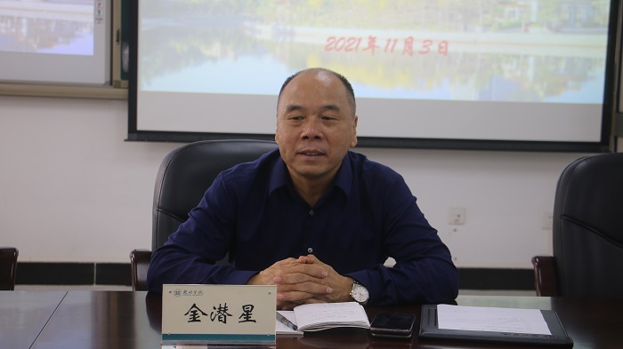 金潜星先生介绍了捐赠书籍的内容概要以及编写过程,并指出,要做一名优秀的思政课教师,要打破现实壁垒,灵活运用多方资源、多种要素,拓宽知识来源渠道,促进自身素养提升。