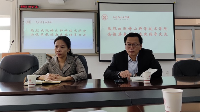 11月19日上午,佛山科学技术学院余俊渠教授莅临我院,与我院教师代表开展学科建设座谈。会议由我院副院长郑广祥主持,学校党委学生工作部部长胡萍,我院思想政治教育专业负责人曾鹰教授、系主任陈梦圆副教授及学院部分老师参与了座谈会。