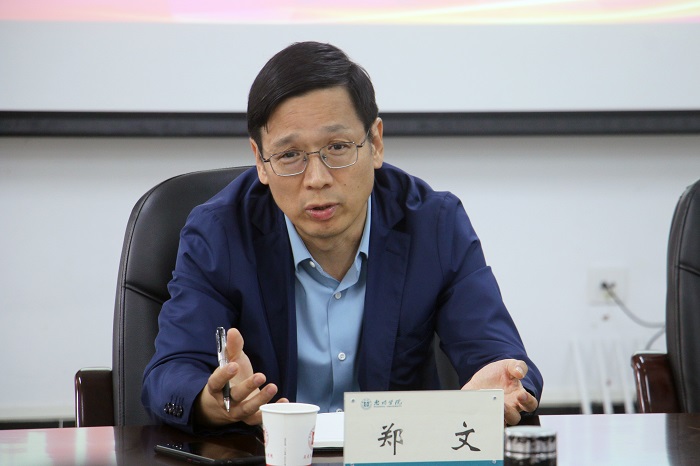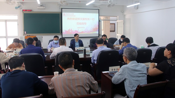 郑文副校长指出,思政课是高校坚持社会主义办学方向的重要阵地,是落实立德树人根本任务的主干渠道,是帮助大学生树立正确世界观、人生观、价值观的核心课程。他指出,马克思在主义学院基层教学组织是学校在开展课堂教学、教研教改的基本单位。学校高度重视基层教学组织的建设,希望通过走访调研,不断加强基层教学组织建设,提升教学质量。他强调,加强思政课的建设,一是基层教学组织日常要规范开展教研教改活动,做到党总支保障、专门团队指导,共同研讨思政课程与课程思政教学设计,完善教学课件、修订人才培养方案和教学大纲等,提升思政课程与课程思政的建设成效。二是创新思政课授课方式,改进教学方法。结合学生专业知识进行有针对性地授课,提升课堂教学效果和学生满意度,提高课堂“抬头率”。