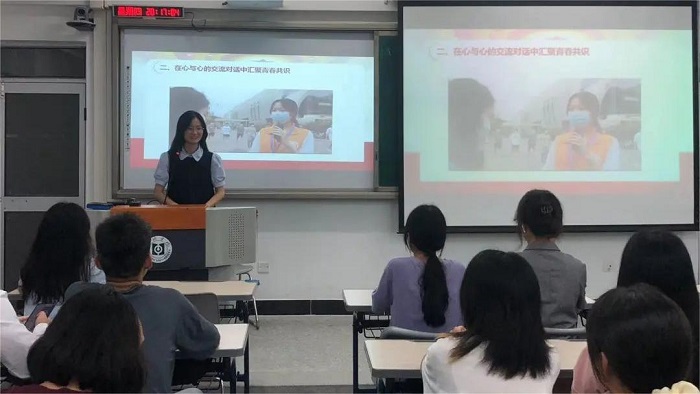 6月1日和6月2日晚上,我院在旭日楼209课室举办青马工程培训班暨入党积极分子培训班学员示范宣讲课。在本次宣讲中,两组学员围绕“更加开放自信地融入世界”“展现构建人类命运共同体的青春担当”“中国青年的全球行动倡议”三部分内容,分别对20级、21级同学进行宣讲,以促进同学们对《新时代的中国青年》白皮书第四部分内容的认知与理解。