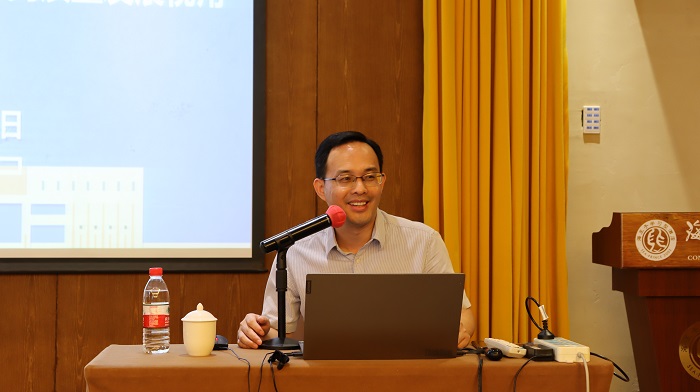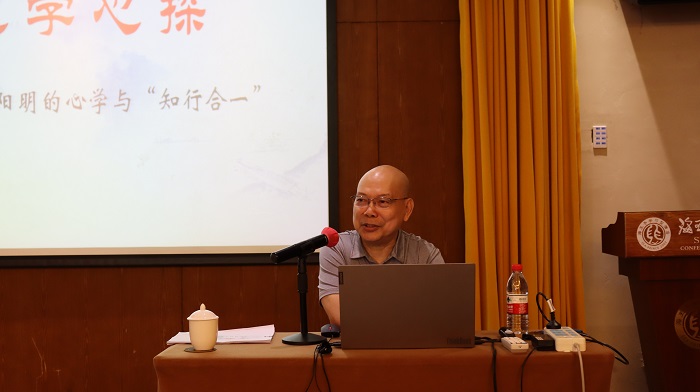 7月12日上午,关建人先生以《心学新探——王阳明哲学思想分析》为主题,阐述了王阳明哲学思想的起源、发展、集大成的历史脉络,并结合自身经历,重点对王阳明学说的核心“知行合一”进行生活化的解释。关建人先生的分享对如何做好一名思政课教师提供了启发,思政课教师应该像王阳明那样“诚意正心”、“知行合一”。