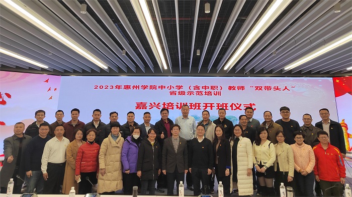 3月25日上午,2022年中小学(含中职)教师“双带头人”实践教学培训班在浙江省嘉兴市党政服务中心正式开班。本次培训的承办方嘉兴市五先文化研究院院长张志松教授、事业部周敏艳主任、培训项目负责人惠州学院马克思主义学院李光副教授以及第一期全体学员参加了本次开班仪式。