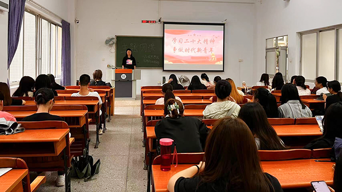 为深入学习贯彻党的二十大精神,激励青年团员牢记初心,永担青春使命,5月8日下午,我院2022级思想政治教育1班团支部在旭日楼111课室开展了“学习党的二十大精神,争做时代新青年”主题团课。