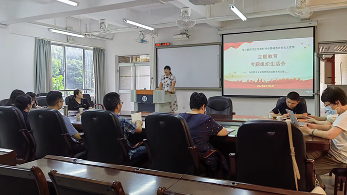 为持续深入推进学习贯彻习近平新时代中国特色社会主义思想主题教育,学习习近平总书记重要讲话精神,9月6日下午,思想政治教育党支部在学院228会议室召开专题组织生活会。支部书记陈梦圆副教授主持会议。