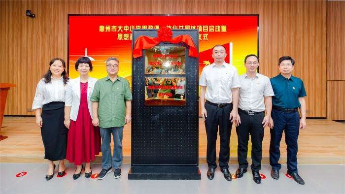 会上,惠州学院党委副书记、纪委书记、省监委驻惠州学院监察专员罗川山,惠州市市委教育工委副书记、党组成员余浩,惠州学院学生处处长陈益智,惠州学院党委宣传部部长金伟,惠州学院马克思主义学院院长赖平,惠州市教育局思政法规科科长刘洪新共同为惠州市大中小学思政课一体化共同体和惠州市思想政治理论课教学联盟揭牌。