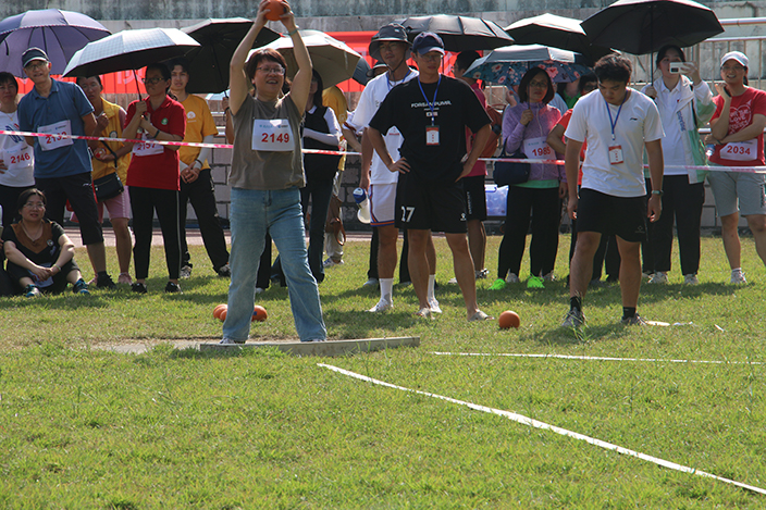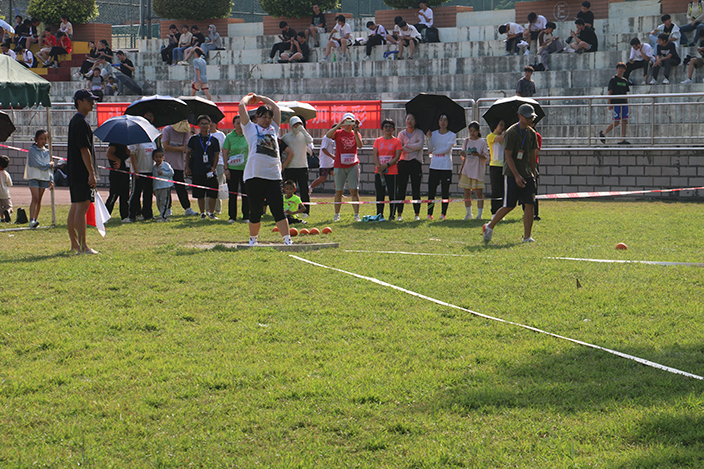 张菊梅老师喜获教工女子乙组实心球第一名
