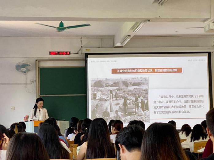 10月24日,马克思主义学院《毛泽东思想和中国特色社会主义理论体系概论》教研室开展教学公开课活动,此次公开课由邵蕾老师主讲,授课对象为22级生物科学专业学生,副院长郑广祥、纲要教研室主任李光、思法教研室主任赵静、概论课教研室部分教师等观摩了公开课。