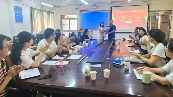 黄敏老师深情回顾了自己在学校从教39年的心路历程,分享了自己在教育工作中的宝贵经验,真切表达了对党和教育事业、对广大学生和学校、学院的深厚情感。大家一致认为,黄老师为人亲和、工作敬业,是我们学习的榜样。在热烈的掌声中,新进教师袁琳博士向黄敏老师献上鲜花,寓意教育事业薪火相传。