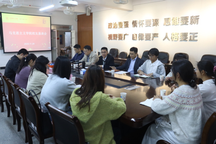 11月29日是我校2025年“校友返校日”。当天上午,马克思主义学院在旭日教学大楼228会议室举行校友恳谈会,院领导、校友代表、在校师生代表齐聚一堂,共叙师生情谊,共话学院未来发展。院党委书记陈雄辉主持恳谈会。